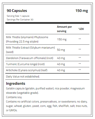 | Milk Thistle Extract (Silybum marianum) (seed) | 50 mg | ** |
