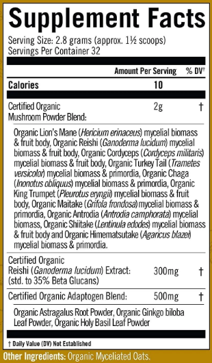 Other ingredients: Organic Myceliated Oats.