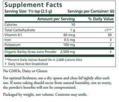 | Organic Barley Grass Juice Powder | 2,500 mg | † |