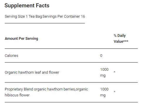 | Proprietary Blend: organic hawthorn berries, organic hibiscus flower | 1000 mg |