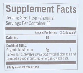 Turkey tail mushroom powderContains immunity activators and beta glucansSupports a healthy immune systemNo added sugarNon-GMO Project verifiedUSDA Organic certifiedKosher certifiedVeganGluten freeKeto friendlyPaleo friendly3.5 oz. (99.22 g) total weight The Om Organic Turkey Tail Mushroom Powder supports a healthy immune system. Gluten free, vegan, paleo friendly, keto friendly, and kosher certified, it is suitable for vari...