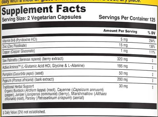 | Saw Palmetto (Serenoa repens) (berry extract) | 320 mg | † |