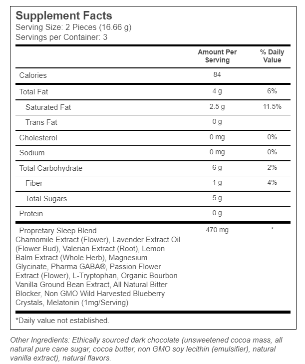 Some nights our minds wander and sleep becomes elusive. Stress from the day, worries and anxiety can keep us counting sheep. Sleepy Chocolate combines powerful botanicals including chamomile valerian, lavender and lemon balm with the clinically researched benefits of magnesium and melatonin to help you fall asleep faster and more soundly.