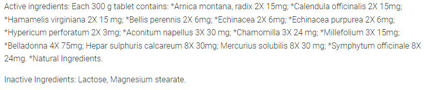 | Hepar sulphuris calcareum 8X | 30 mg |